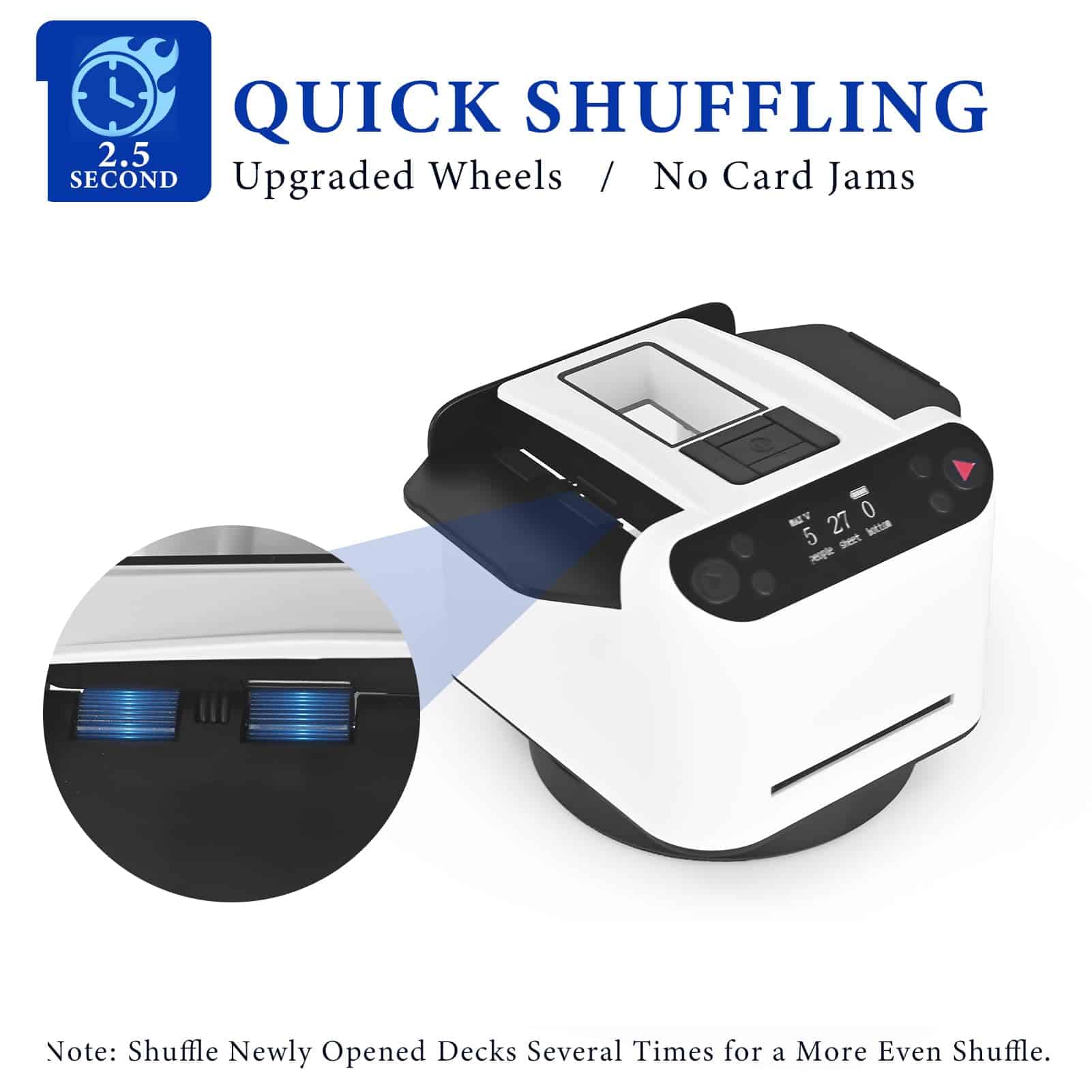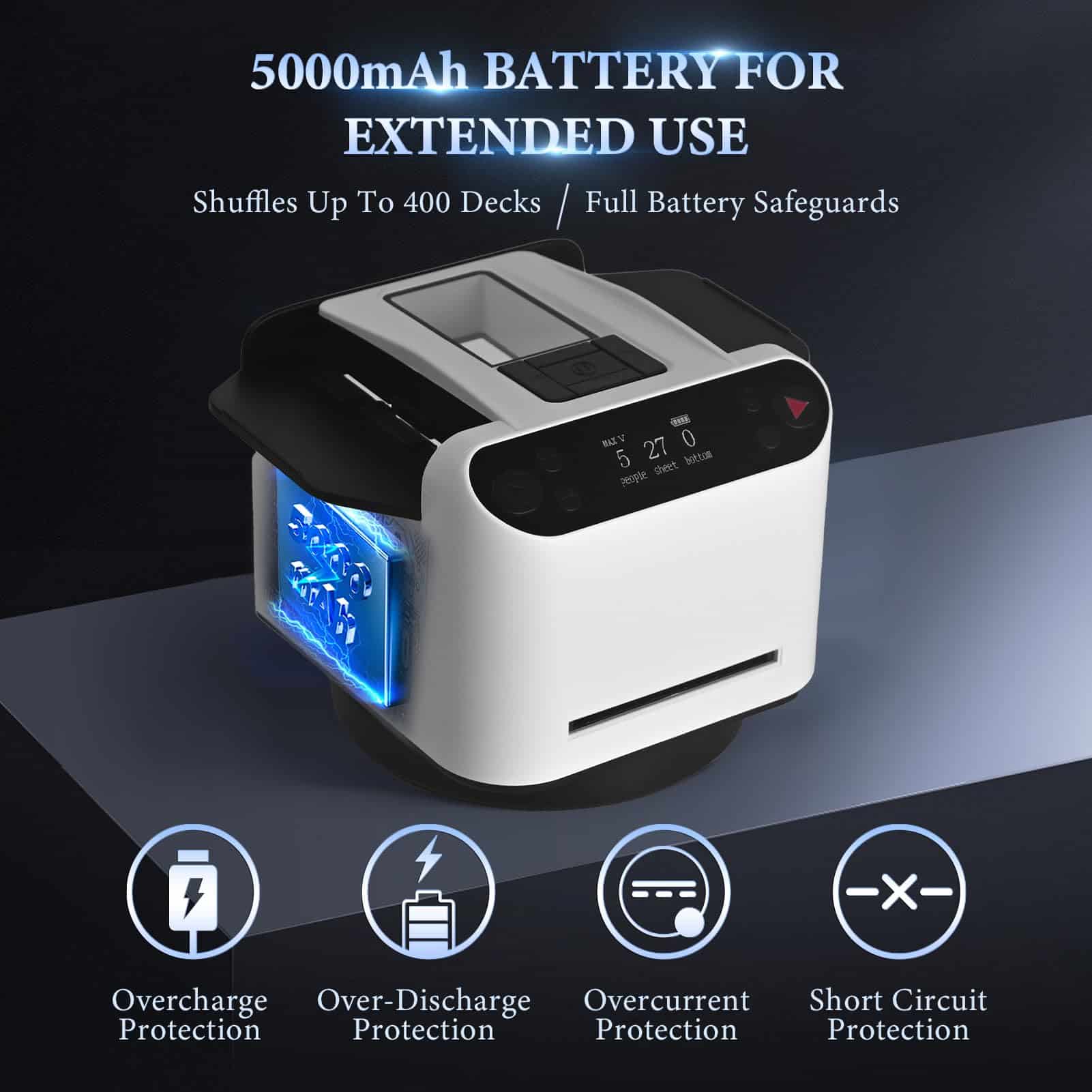 Alimentado por una robusta batería de 5200mAh, este repartidor de cartas garantiza una impresionante autonomía de 3 a 7 días con una sola carga. Su diseño incluye una base extragrande, antideslizante y de absorción de impactos, junto con motores dobles de baja emisión de ruido, proporcionando una experiencia de reparto de cartas estable y silenciosa que mejora la atmósfera de tu juego.