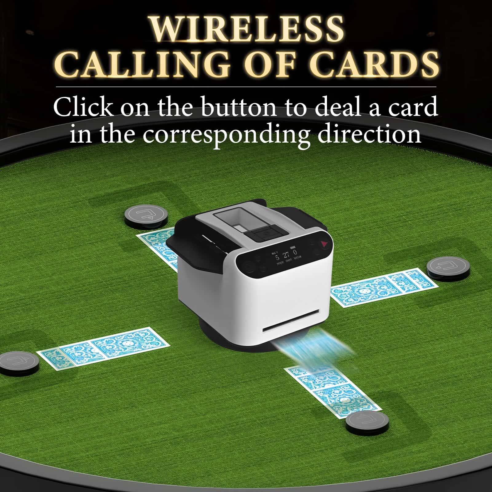 Lleva tu juego al siguiente nivel con 4 botones inalámbricos de llamada de cartas. Señala y solicita cartas sin interrumpir el flujo del juego, ya sea que estés al otro lado de la habitación o en un extremo diferente de la mesa. La funcionalidad inalámbrica garantiza una comunicación sin problemas, añadiendo una capa adicional de eficiencia y disfrute a tu experiencia de juego.