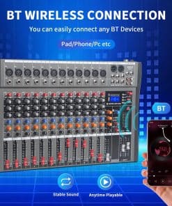 Mezcladora de Audio de 12 Canales, Mesa de Mezclas Digital