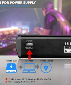Características: – Chasis resistente de metal y panel exquisito en 2 lados – 16 efectos digitales preestablecidos – Salida SUB integrada, control de EQ para reproductor de MP3 – Puede elegir 6 tipos de efectos de sonido (Normal/Rock/Pópa/Clásico/Jazz/ Country) – Conectividad flexible para una variedad de dispositivos externos – Diseño de ruido ultra bajo con una gran capacidad de manejo – Tarjeta de sonido integrada para soporte de grabación en computadora – Interfaz USB: Conéctese a Mac / PC – Faders estilo rotativo suave para controles de micrófono/USB/línea/maestro – EQ de 2 bandas y panorámica extremadamente musical en cada canal – Conector de micrófono combinado XLR y 6,35 mm – 4 entradas y salidas estéreo XLR+6,35 mm (L/R) – Funciones de efecto de eco de voz/retraso – Luces indicadoras de CLIP de señal de audio – Botones de selección/control de entrada – Controles de volumen de canal independiente + MAESTRO – Ajuste de balance/frecuencia alta + baja independiente por canal – Compatible con archivos de audio digitales universales Qué hay en la caja: – Interfaz de mezclador – Cable USB – Adaptador de pared Especificaciones técnicas: – Fuente de alimentación: DC 5V/1A – Alimentación phantom: +48V – Distorción armónica total: 0.5%@+4dB – Interfaz USB: USB 2.0, Windows 98SE+, MacOS – Fuente de alimentación: USB, DC 5V/1A – Dimensiones (L x A x H): 11.22” x 9.06” x 2.17” pulgadas