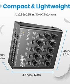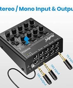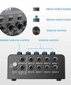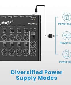 La mezcladora de audio Moukey es perfecta para pequeños clubes, bares y escenarios donde se requiere una mezcla de varias señales de sonido. Con 8 canales ultra estéreo de bajo ruido, esta mezcladora le permite mezclar guitarras, bajos, teclados y otras señales para crear una salida de sonido única y clara. Con la capacidad de conmutar fácilmente entre estéreo y mono, y con una fuente de alimentación de DC 5V, esta mezcladora es versátil y conveniente de usar en una variedad de situaciones. Cada canal tiene controles independientes de volumen y conectores de entrada, lo que le brinda un control completo sobre su mezcla. La mezcladora de audio Moukey garantiza la mejor calidad de sonido en todos los niveles de salida, libre de ruido y distorsiones no deseadas. Además, nuestro equipo de servicio al cliente está disponible las 24 horas del día para ofrecerle asistencia en caso de cualquier pregunta o problema. Obtenga la mezcladora de audio Moukey hoy y lleve su mezcla de sonido al siguiente nivel.
