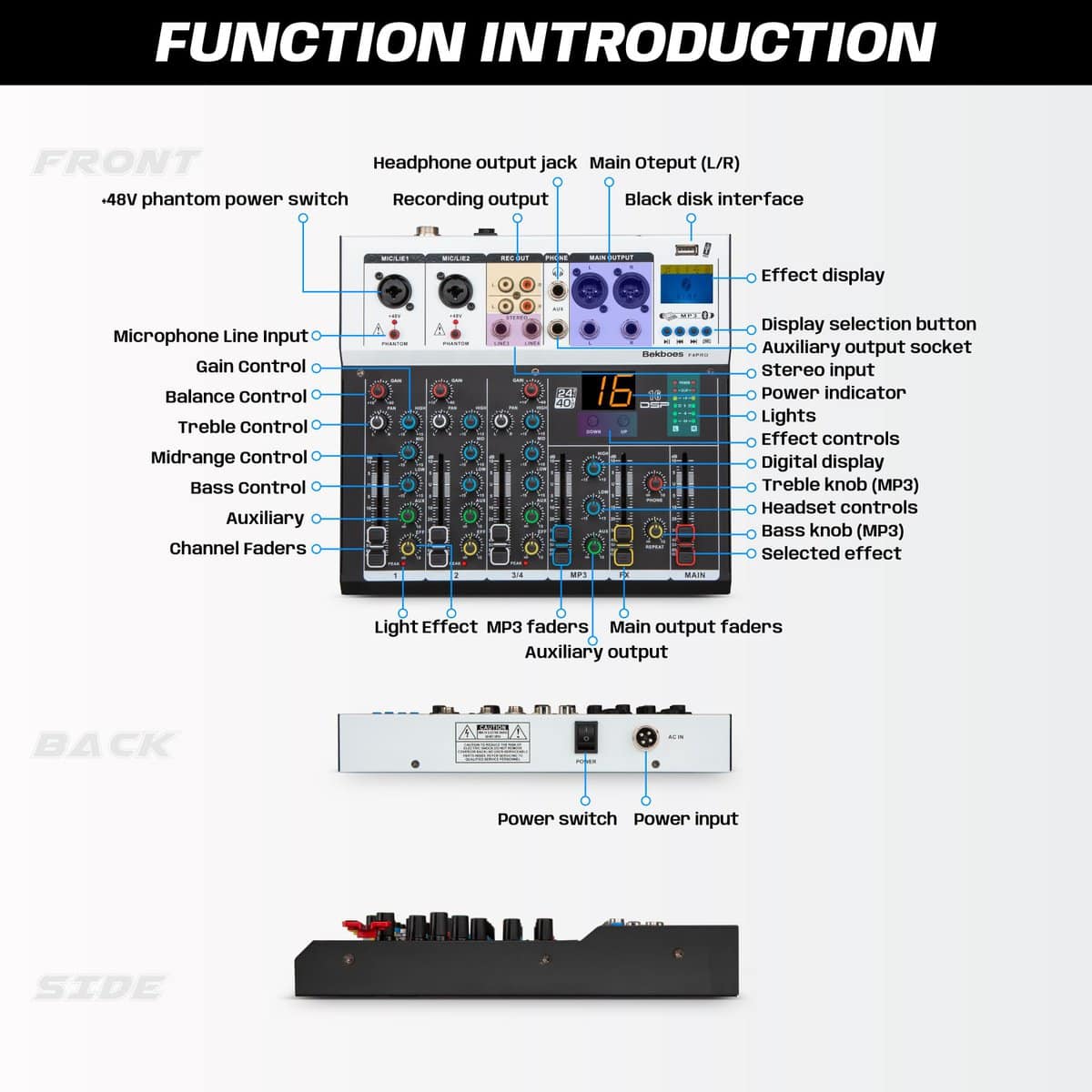 Mezcladora de Audio Profesional BEKBOES, 4 Canales, Entrada