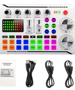 La Mezcladora de Audio Profesional F998 es ideal para podcasting, streaming y grabación de música. Incorpora un chip de reducción de ruido DSP Dual importado, soporte para micrófono de condensador de alta calidad, 16 efectos de sonido especiales, 7 modos de grabación, 4 modos de cambiador de voz, y funciones adicionales como Eliminación de Ruido, Voice Over y Reproducción Interna. Fácil de operar, con batería de larga duración y amplias aplicaciones para estudio de grabación, DJ, karaoke, gaming, TikTok, Facebook y YouTube. Viene con una garantía de un año.