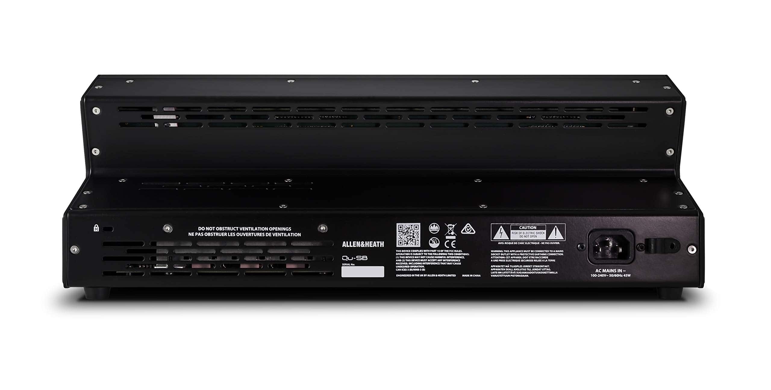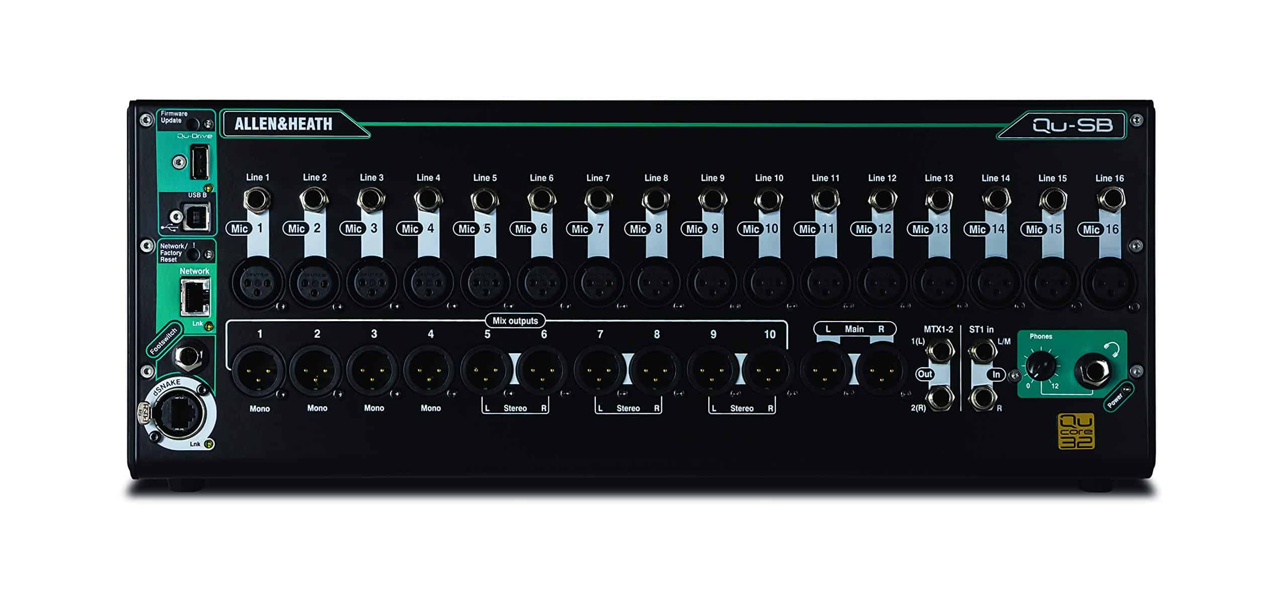 La QU-SB de Allen & Heath es una mezcladora digital ultra compacta diseñada para control con iPad, brindándole la libertad de mezclar desde cualquier lugar en el lugar y ofreciendo una solución inteligente y portátil para bandas, AV e instalaciones. La aplicación compañera Qu-Pad es una interfaz de mezcla elegante e intuitiva que proporciona un fácil acceso a todas las funciones de Qu y sus opciones de configuración. Además de sus 18 entradas y 14 salidas incorporadas, la QU-SB se puede ampliar hasta 32 entradas mono y 24 salidas conectándose a uno de nuestros audioracks remotos a través de un solo cable Cat5. Combine esto con la aplicación de monitoreo personal Qu-You para Android e iOS, además de los mezcladores personales ME-1, y la QU-SB es una excelente opción para bandas que buscan el mismo gran sonido de monitoreo donde sea que toquen. La QU-SB está diseñada para integrarse perfectamente con la aplicación Qu-Pad de iPad, brindando acceso rápido y fácil a todas las configuraciones, incluido el procesamiento de canales, medidores y vistas RTA, racks de efectos, gestión de escenas, control de audio USB, menús de configuración y mucho más. Qu-Pad se conecta a la mezcladora a través de Wi-Fi y le brinda la libertad de ajustar los monitores en el escenario, moverse por el lugar mientras ajusta el PA y luego mezclar el espectáculo desde el corazón de la audiencia. Los preamplificadores de total recuperación analógica de la QU-SB cuentan con detección de cruce por cero y un avanzado paso de ganancia de 1 dB sin almohadilla, estrechamente aliado con el DSP para una precisión óptima de la ganancia y transparencia de audio. La señal analógica es capturada por convertidores analógico-digitales de 24 bits de alta calidad y baja latencia emparejados con convertidores digitales-analógicos de 24 bits de alta calidad para entregar las salidas requeridas. El diseño AnalogiQ se ha refinado durante muchos meses para ofrecer una superb transparencia, distorsión mínima y un piso de ruido ultra bajo, con un sonido cálido y musical que falta en algunas consolas digitales.