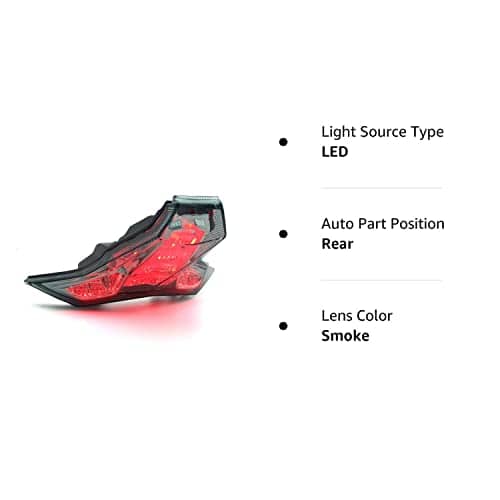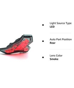 MFC PRO Luz Trasera LED Integrada de Motocicleta con Lente Ahumada y Señales de Giro Ámbar Incorporadas Especificaciones: — Voltaje: 12V — Color: Cuerpo negro con lente verde menta — Color de la Luz: Rojo (Luz de Posición y Freno) / Ámbar (Luz de Giro). — Sistema de Conexión de Cables: Conexión de 5 cables — Compatibilidad: Compatible con KAWASAKI Z1000 2014-2018 (No compatible con los modelos Z1000SX) — Condición: Artículo nuevo al 100% — Función: Luz Trasera / Lámpara de Posición Trasera / Luz de Giro / Luz de Freno Características: Alta calidad y durabilidad. Tiempo de respuesta más rápido de encendido / apagado. Agrega visibilidad y seguridad. Producto nuevo, probado al 100% antes del envío. Luz trasera multifuncional todo en uno. Compatibilidad: para Kawasaki Z1000 2014-2018 para Kawasaki ZX-10R Ninja 2016-2021 para Kawasaki Ninja ZX-10R SE 2018-2021 para Kawasaki ZX-10RR 2018-2021 para Kawasaki Z1000R Edition 2018-2021 Contenido del paquete: 1 x Luz Trasera