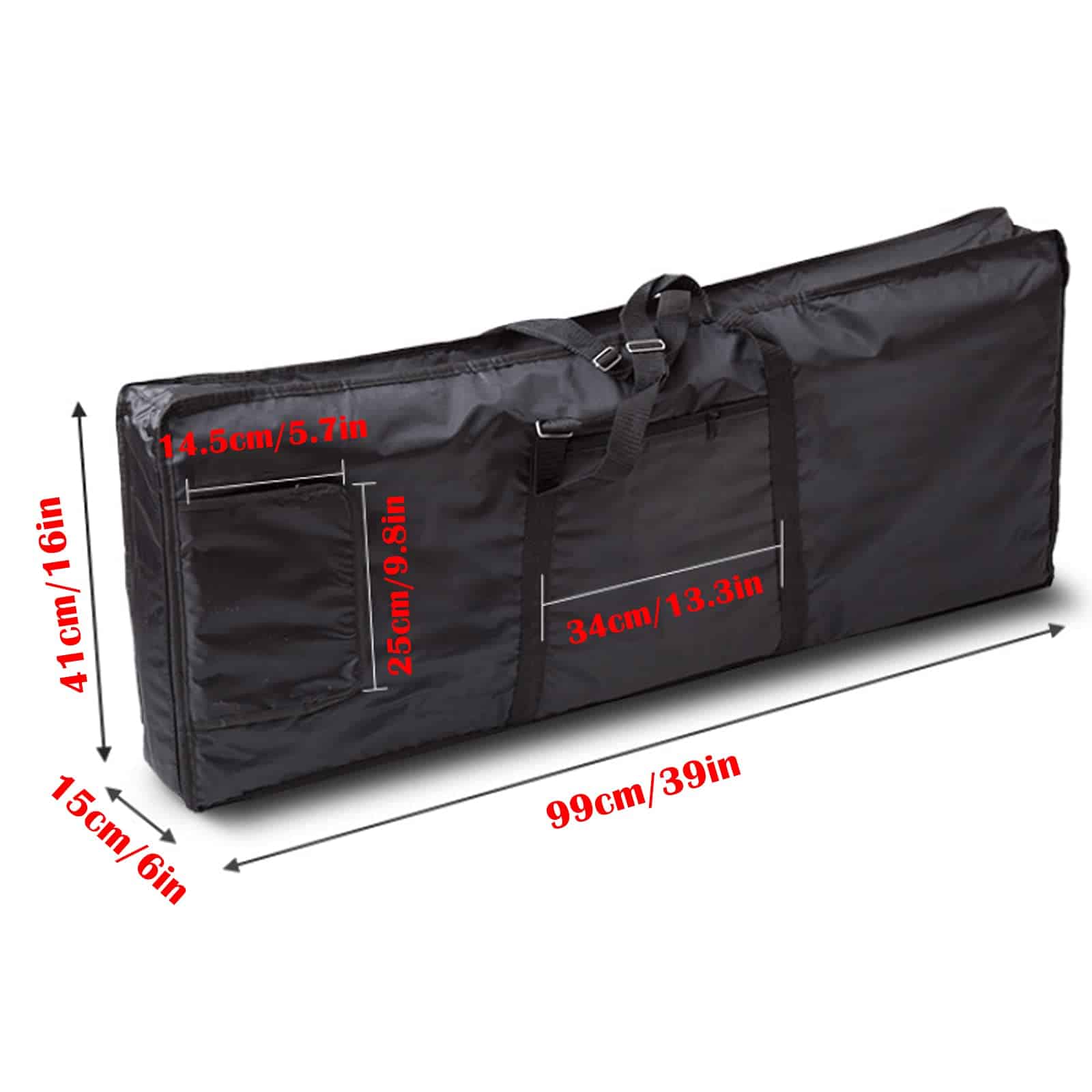 4. Dimensiones Amplias y Gran Capacidad: 39x16x6 pulgadas de dimensiones son suficientes para contener un teclado eléctrico de 61 teclas y con los dos bolsillos exteriores para almacenar libros y suministro de energía, etc.