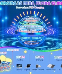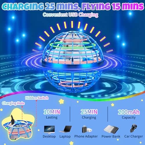 Experimenta un encantador espectáculo de luces mientras la bola voladora planea, con colores LED dinámicos que cambian.