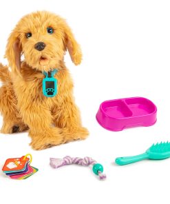 Moji es el adorable labradoodle que reacciona cuando lo acaricias y le hablas, ¡como un cachorro real! Le gusta que lo cepillen, jugar con la cuerda y hacer trucos cuando se los pides. Moji tiene un collar de emoji que te ayuda a entender exactamente lo que está pensando y lo que quiere. ¡Incluso puedes sostener cartas especiales frente al collar de Moji para darle un baño, darle un premio y mucho más!