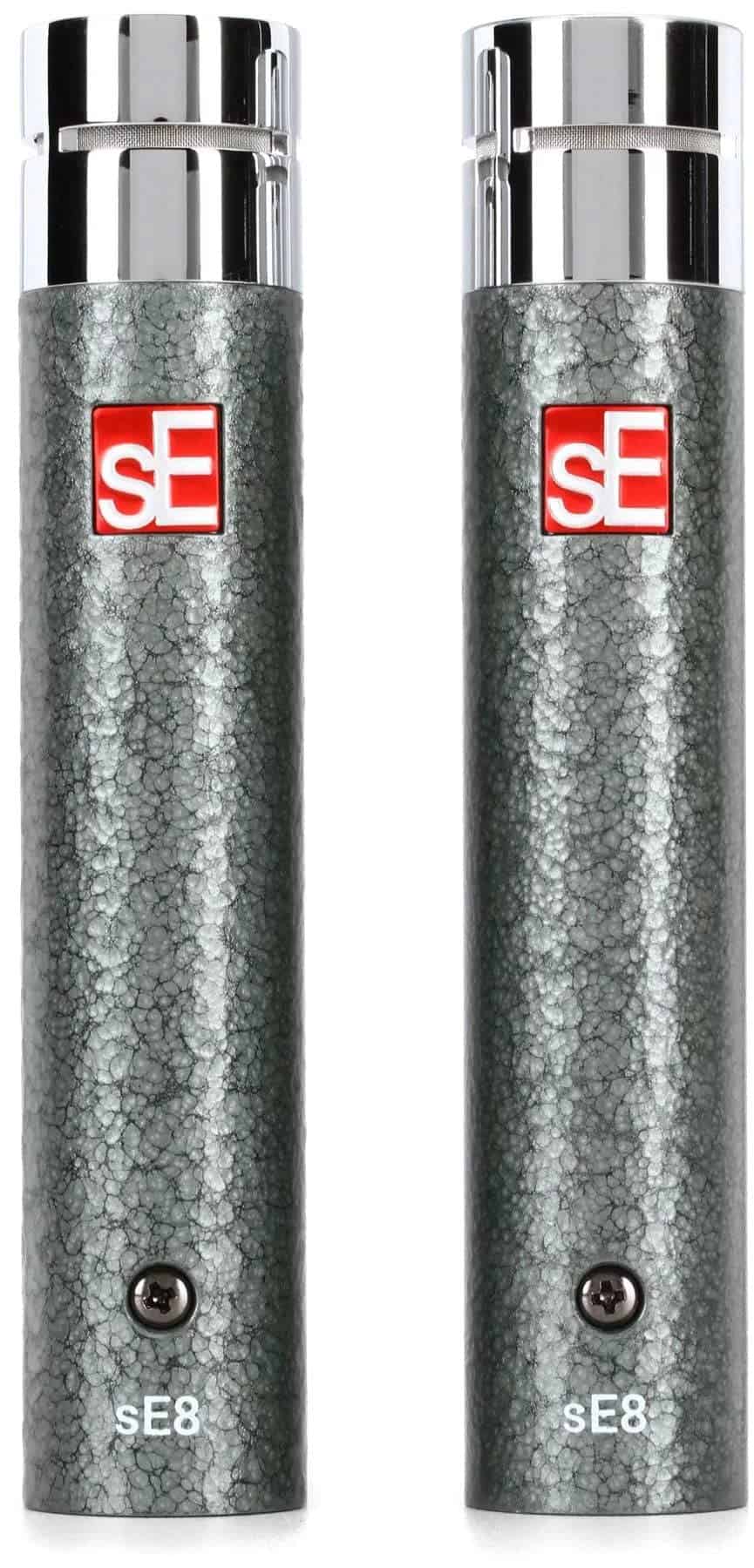 El sE8 es un micrófono condensador de diafragma pequeño de alto rendimiento, perfectamente equilibrado. Su cápsula hecha a mano implementa un diseño sofisticado que proporciona un sonido perfectamente equilibrado, sin ser agresivo, perfecto para fuentes como platillos y overheads de batería. También es uno de los micrófonos de cápsula pequeña más silenciosos del planeta y con el rango dinámico más alto y manejo de SPL de su clase, junto con almohadillas de atenuación y filtros de corte de graves para una flexibilidad excepcional, el sE8 está listo para cualquier sonido que estés haciendo, ya sea en el entorno de estudio o en aplicaciones exigentes en el escenario. Especificaciones: Tipo de cápsula: Condensador verdadero de diafragma pequeño hecho a mano. Patrón polar: Cardioide. Rango de frecuencia: 20 Hz – 20 kHz. Sensibilidad: 25 mV/Pa (-32 dBV). SPL máximo: 139 / 149 / 159 dBSPL (Almohadilla de 0/10/20 dB) (0.5% THD @ 1kHz). Nivel de ruido equivalente: 13 dB(A). Rango dinámico: 126 / 136 / 146 dB (Almohadilla de 0/10/20 dB). Relación señal/ruido: 81 dB. Filtro de corte de graves: 80 / 160 Hz, 6 dB/Oct, conmutable. Atenuación de almohadilla: 10 / 20 dB, conmutable. Alimentación: 48 Voltios según IEC 61938. Impedancia eléctrica: 110 Ohms. Impedancia de carga recomendada: 1k Ohms. Consumo de corriente: 27 mA. Conectividad: Conector XLR macho de 3 pines. Dimensiones: Diámetro: 23mm (0.91 in), Longitud: 120mm (4.72 in). Peso: 141 g (4.97 oz).