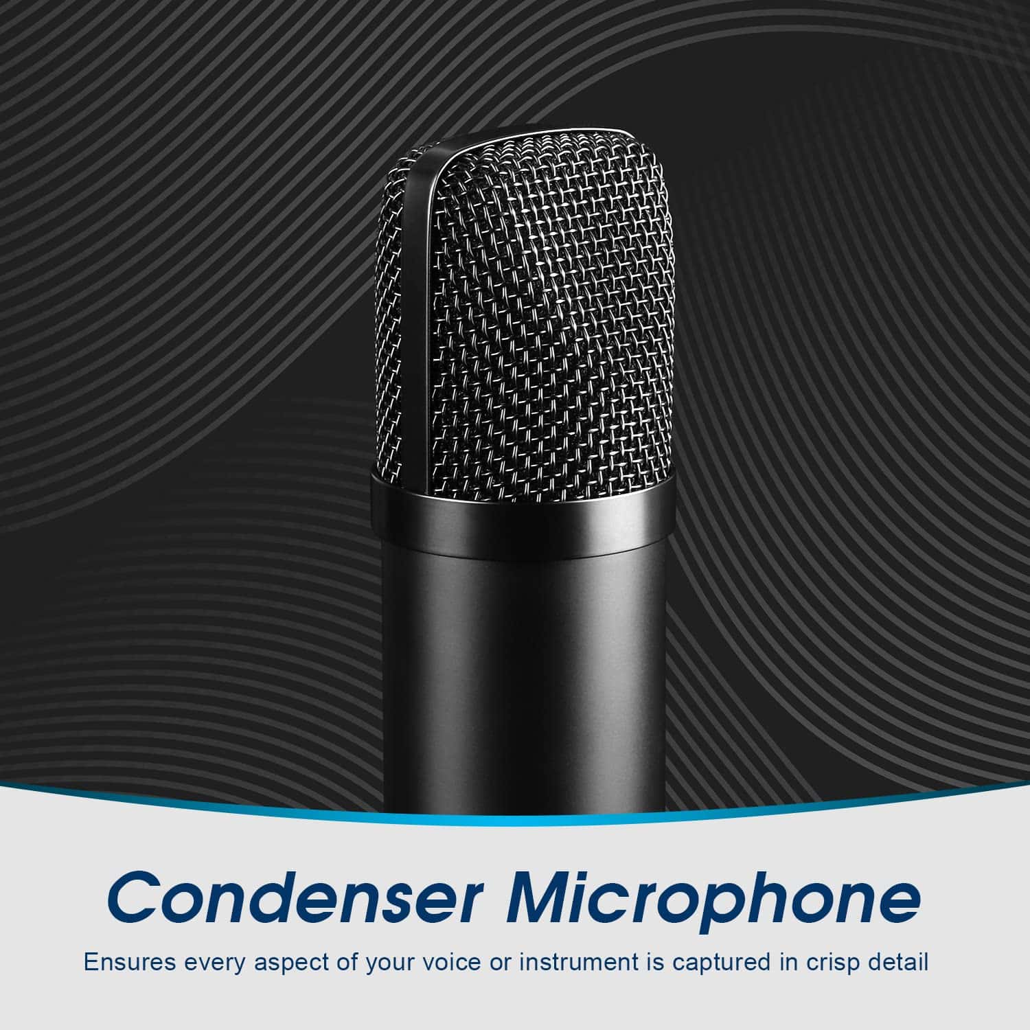 Micrófono condensador cardioide – Sonido realista y auténtico gracias al amplio rango de frecuencia (20Hz – 20KHz) y diafragma grande de 16mm. Este micrófono minimiza el ruido ambiental y se enfoca en tu voz. Un sonido unidireccional profesional para grabaciones de alta calidad. Brazo articulado – El soporte de metal en forma de tijera permite un perfecto agarre en una mesa o escritorio. Es fácil de mover libremente y ajustar cuando sea necesario. El micrófono está a la altura perfecta para hablar y grabar – Grosor máximo de escritorio: 1.8″/46mm. Plug and Play – Con un cable USB A a USB B, el micrófono condensador es perfecto para Mac, Windows, computadoras y PlayStation. Para reuniones remotas en Teams o Zoom, juegos, podcasts, transmisiones en vivo en YouTube y Twitch con calidad de audio de estudio. Soporte antichoque – Las correas elásticas gomosas reducen los ruidos no deseados debido a micro golpes y vibraciones en el entorno de grabación (teclado, ratón y movimiento corporal). Asegúrate de tener un sonido claro y cristalino. Filtro Pop – Atenúa la respiración para aumentar la calidad de la grabación. Graba y hazte escuchar de manera profesional con un sonido más claro y puro con este paquete de micrófono. Un parabrisas incluido permite un filtrado de sonido aún mejor cuando deseas realizar una grabación de muy alta calidad.