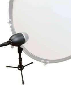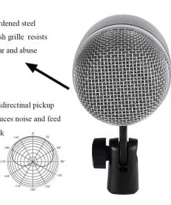 El micrófono dinámico de alta salida diseñado específicamente para bombos e instrumentos de bajo, con una amplia respuesta de frecuencia que garantiza capturas de audio excepcionales. El excelente micrófono de batería proporciona un sonido de calidad de estudio a niveles extremadamente altos de presión sonora. Su bobina móvil dinámica y patrón unidireccional aseguran un alto nivel de ganancia antes de retroalimentación y una excelente capacidad de rechazo del sonido no deseado. El adaptador de soporte con bloqueo dinámico integrado con conector XLR integral simplifica la configuración, especialmente al colocar el micrófono dentro de un bombo. La rejilla de malla de acero endurecido protege el micrófono contra el desgaste y los abusos.