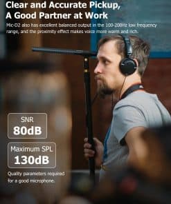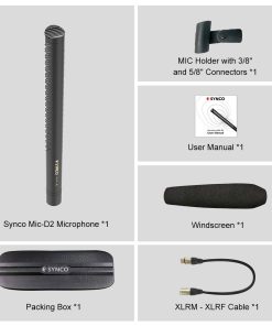 SYNCO MIC-D2 Micrófono de Cañón: ¡Sonidos en Sync en todas partes! Un micrófono de cañón hipercardioide con Cuerpo de latón sólido, Ruido propio extremadamente bajo, Respuesta de frecuencia ultra plana y Conector XLR bañado en oro. Excelente opción para filmación y grabación de emisión. Profesional y alta sensibilidad Con -32 dB de sensibilidad, el micrófono de cañón D2 recogerá el sonido con más detalles, alcanzando la máxima entrada acústica. Patrón polar hipercardioide Enfóquese en el sonido frente a las videocámaras, atenuando eficazmente la coloración fuera de eje para lograr el mejor efecto de captación de sonido. Bajo ruido propio Con 80dB SNR, el micrófono D2 puede transferir de forma máxima la señal deseada mientras reduce el ruido de fondo. Respuesta de frecuencia balanceada Con un rango de respuesta de frecuencia de 20Hz-20kHz, este micrófono producirá un sonido natural preciso. Soporte de múltiples ángulos Un mini soporte con conectores de 3/8″ y 5/8″ ayudaría a montar el micrófono en una pértiga o trípode fácilmente (cabeza de rotación de 180 grados). Conector XLRM bañado en oro Se puede conectar a la mayoría de las videocámaras, grabadoras, mezcladoras con un cable XLRM-XLRF estándar de 19.7 pulgadas (incluido). El cuerpo de metal de latón mecanizado garantiza la construcción sólida con alta anti-interferencia. Parabrisas de micrófono único perfecto para disparar escenas diferentes. Especificación Respuesta de frecuencia: 20Hz-20kHz Sensibilidad: -32dB 3dB (1dB 1V/Pa a 1kHz) Impedancia de salida: 450 20% (a 1kHz) Máx. Entrada SPL: 130dB (T.H.D 1% a 1kHz) Relación señal / ruido: 80dB (1KHz a 1Pa) Rango dinámico: 117dB (1kHz a Max SPL) Requisitos de energía: 48V DC, 2mA Peso: 65g Dimensiones: 0.75 9.84 pulgadas Interfaz de salida: XLRM Paquete 1 Micrófono SYNCO MIC-D2 1 Soporte de micrófono con conector de 3/8″ y 5/8″ 1 Cable XLRM-XLRF de 19.7 pulgadas 1 Parabrisas de algodón 1 Manual del usuario