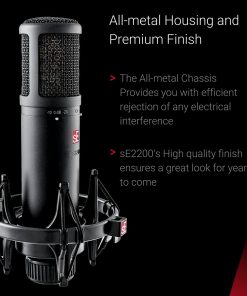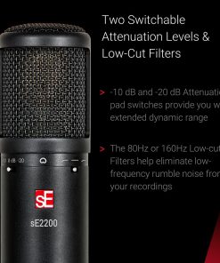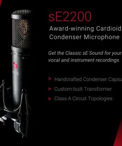El sE Electronics sE2200 es la última actualización del venerable micrófono de condensador cardioide de diafragma grande de la compañía, y gracias a sus componentes discretos de Clase A, suena increíble. Ofrece el mismo sonido impresionante y directo y el completo conjunto de características que hicieron que la versión original fuera un gran éxito. Este es un micrófono increíblemente versátil, igualmente adecuado frente a un gabinete de guitarra como sobre una batería. Y si buscas ese primer micrófono vocal realmente especial, el sE2200 es una excelente elección. En GearNuts, sabemos reconocer el valor cuando lo escuchamos. El sE Electronics sE2200 es una adición obvia a tu colección de micrófonos.