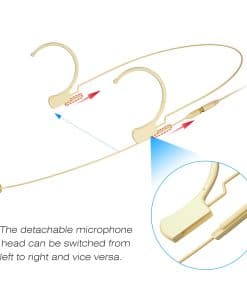 El diseño ergonómico y flexible del micrófono garantiza un ajuste suave y cómodo. El gancho de silicona para la oreja se puede girar 360 , lo que lo hace conveniente para almacenar. La cabeza del micrófono es desmontable y se puede cambiar de izquierda a derecha, y viceversa, para adaptarse a las diferentes preferencias del usuario.