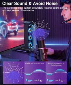 Este micrófono de podcast cuenta con un chip de precisión eficiente con una tasa de muestreo de 192kHz/24bit, lo que proporciona una transmisión de audio clara; el patrón de captación cardioide captura la fuente de sonido directamente desde el frente, restaura con precisión los detalles del sonido y suprime el ruido fuera del eje, lo que es muy adecuado para grabaciones en solitario o doblajes. Este micrófono USB no requiere configuración, disfruta de la simplicidad de enchufar y usar y la conexión de latencia cero. Es compatible con tu computadora o MacBook directamente de la caja sin una operación complicada, lo que es muy adecuado para principiantes o tareas diarias de podcasts y conferencias. Este micrófono Musclez tiene un botón de silencio dedicado para silenciar rápidamente el micrófono, proporcionando un control de privacidad independiente de la configuración del software. La luz indicadora en el micrófono te permite proteger instantáneamente tu privacidad durante la transmisión en vivo o la grabación sin depender de la configuración del software. (Azul: modo de reducción de ruido, Rojo: modo de silencio, Verde: modo de trabajo). Este micrófono dinámico fascina a tu audiencia con efectos de iluminación personalizables. Puedes elegir efectos de tiras, colores estáticos o degradados automáticos para inyectar energía activa en el entorno circundante. Con solo un toque en la parte superior del micrófono, puedes cambiar fácilmente entre los modos RGB para un control instantáneo del ambiente. Este micrófono es adecuado para una variedad de escenarios y sus funciones versátiles satisfacen una variedad de usos. Ya sea para transmisiones en vivo, grabaciones, deportes electrónicos, videoconferencias, chats diarios; se puede utilizar en casa, en el estudio, en la sala de transmisiones en vivo o al aire libre, y es compatible con el 99% de las computadoras, teléfonos móviles y aplicaciones en el mercado.