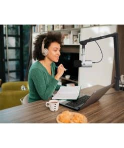 Micrófono dinámico de gran diafragma USB y XLR diseñado para podcasts, transmisiones, radiodifusión, locuciones y grabaciones de voz de todo tipo.