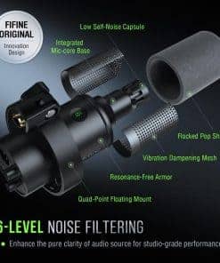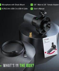 Micrófono dinámico FIFINE, ideal para grabación de podcast, vocal, voz en off y transmisión. La calidad de sonido limpio garantiza que el audio se mantenga fiel a su originalidad. El micrófono cuenta con una salida XLR para lograr un espacio de audio envolvente en tus podcasts. También es compatible con conexión USB para grabar de manera más conveniente en tu PC. El control de mudo y ganancia permiten ajustar el volumen de grabación rápidamente. La monitorización en tiempo real y el control de volumen de los auriculares garantizan una grabación precisa. Además, la reducción de ruido adicional con el parabrisas y la montura de choque incluidos asegura grabaciones limpias y poderosas. Accesorios y consejos cálidos también están incluidos para una mejor experiencia de grabación.