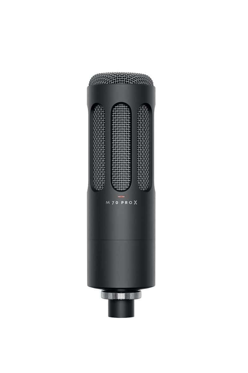 El micrófono dinámico M 70 PRO X tiene una respuesta de frecuencia extendida y equilibrada y se utiliza para grabaciones de alta calidad de voz. El patrón polar cardioide distintivo elimina señales no deseadas, y el efecto de proximidad afinado garantiza una claridad de sonido consistente. La respuesta de frecuencia extendida garantiza una imagen de sonido diferenciada y de alta resolución. El diseño resistente del M 70 PRO X cuenta con una alta durabilidad.