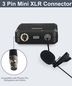 Micrófono inalámbrico de solapa Phenyx Pro PTU-5000 con conector Mini XLR que ofrece una excelente calidad de sonido y comodidad de uso. Con una construcción resistente que incluye un clip metálico y un brazo de cable metálico, este micrófono es ideal para su uso en escenarios, iglesias, salas de conferencias, entrevistas, grabaciones de video y presentaciones. La cápsula de condensador unidireccional está diseñada de manera especial para una excelente captura de sonido y una reproducción de sonido premium, lo que crea un sonido claro y robusto con máximo rechazo de retroalimentación y mínimo sonido estático. El conector Mini XLR es compatible con el Sistema de Micrófono Inalámbrico Bodypack Phenyx Pro PTU-5000 y otros sistemas de sonido que cuenten con conector Mini XLR. Disfruta de la libertad de movimiento que te brinda este micrófono inalámbrico y confía en la calidad y fiabilidad de los productos Phenyx Pro.