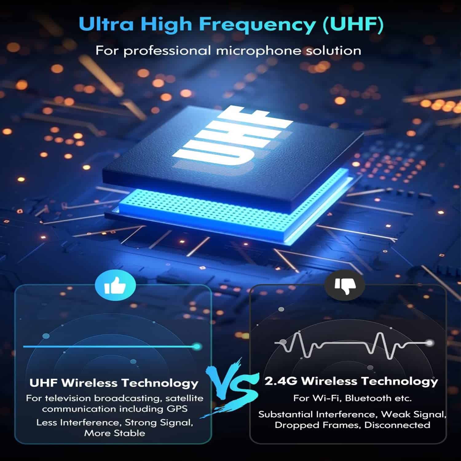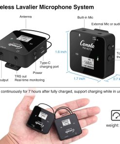 ¿Por qué deberías elegir el Micrófono inalámbrico UHF Camola y el receptor? 1. Ahorra dinero en fotografía. 2. Señal extremadamente estable gracias a la tecnología de diversidad de señal de doble antena. 3. Monitor en tiempo real para probar la conexión y calidad del sonido. 4. Tamaño compacto y portátil con múltiples accesorios incluidos. 5. Diseño de marca profesional y servicio postventa profesional. Especificaciones: Rango de trabajo de hasta 80m. Tiempo de trabajo del transmisor hasta 3.5h y del receptor hasta 5h. Frecuencias de operación de 566-594 Mhz. Tamaño compacto y ligero. Incluye: 1 Microfono Transmisor, 1 Microfono Receptor, 1 Lanyard, 2 Cables USB Tipo-C, 1 Cable TRS para cámara, 1 Cable TRRS para Smartphone, 1 Micrófono de solapa.