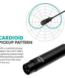 El Micrófono Lavalier Cardioide LV4-C de Movo es un micrófono lavalier XLR de alta calidad. Requiere alimentación phantom de 48V y funciona con grabadores de audio, mesas de sonido o receptores inalámbricos que acepten entradas XLR. La cápsula cardioide proporciona un área de captura generosa mientras mantiene un adecuado bloqueo de retroalimentación y ruido. Una amplia respuesta de frecuencia y una alta calificación de SPL resultan en una reproducción de audio completa y clara para discursos. Especificaciones del Micrófono Lavalier Cardioide: Tamaño de la cápsula: 6mm, Respuesta de frecuencia: 35-18KHz +/-3dB, SPL máximo: 120 dB, Sensibilidad: -38dB +/-3dB / 0dB 1V/Pa, 1kHz, Impedancia de salida: 200 ohmios, Requisito de alimentación: Alimentación Phantom de 48V, Relación señal/ruido: 78 dB, Conector: XLR, Longitud del cable: 6 pies