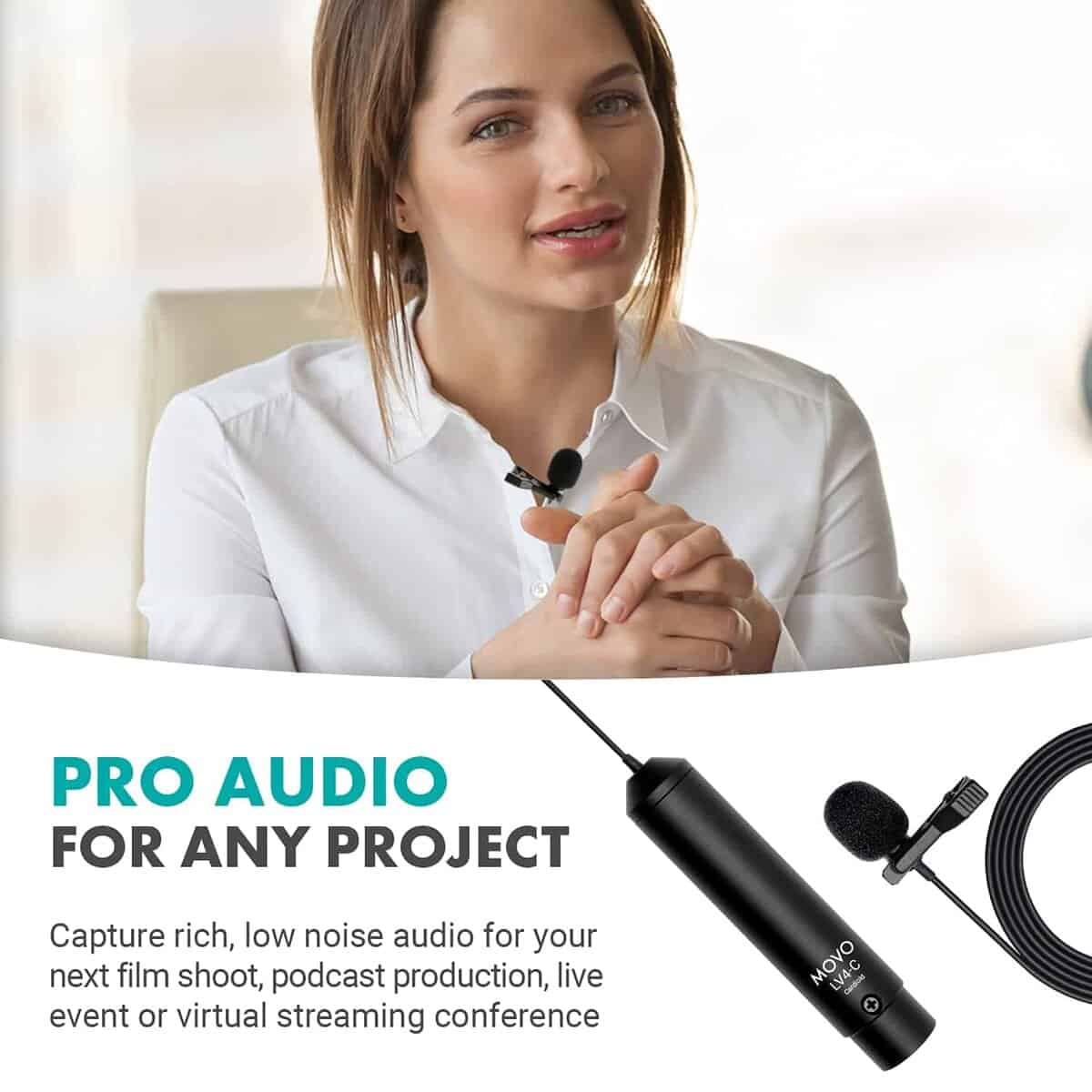 Micrófono Lavalier Cardioide XLR Movo LV4-C con Phantom