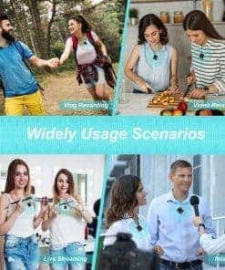 1. Para Dos Personas Contiene dos micrófonos TX que pueden conectarse al RX al mismo tiempo para grabación de video y transmisión en vivo entre dos personas. Los dos transmisores pueden usarse de forma independiente. 2. Ligero y Portátil El transmisor pesa solo 27g, el tamaño mini permite que el transmisor se pueda sujetar fácilmente a su camisa, cuello o corbata. No caerá incluso si se está moviendo. 3. 5H de Tiempo de Trabajo El transmisor y el receptor tienen baterías recargables integradas de litio, utilizan puertos de carga tipo C y pueden usarse continuamente durante al menos 5 horas después de cargar durante 1.5 horas. 4. Transmisión Estable de 165FT La distancia de transmisión inalámbrica puede alcanzar 165FT (50M) en línea de visión. Plug and play, no es necesario configurar ni Bluetooth. 5. Operación Visual El receptor está equipado con una pantalla TFT, que puede mostrar el nivel de batería, estado de emparejamiento, fuerza de la señal, volumen de salida, etc. 6. Monitoreo en Tiempo Real El receptor tiene un conector de auriculares de monitor de 3,5mm que admite monitoreo en tiempo real. Ofrece alta fidelidad y transmisión rápida. 7. Función de Silencio Presione el botón de encendido del TX o RX para entrar en modo de silencio. El volumen se puede ajustar en ambos lados del TX y RX. Ambos transmisores tienen control de volumen independiente. 8. Diseñado para Cámara El receptor con clip trasero se puede instalar en la zapata fría de la cámara y el trípode para teléfonos inteligentes. Adecuado para escenarios de grabación de voz, como VLOG, grabación de video, entrevistas, comerciales, transmisiones en vivo de YouTube/Facebook/Tik Tok, podcasts, filmación, etc. 9. Lista de Embalaje Transmisor 2, receptor, micrófono de 3,5mm 2, cable de adaptador de cámara, cable de adaptador de teléfono, cable de carga.