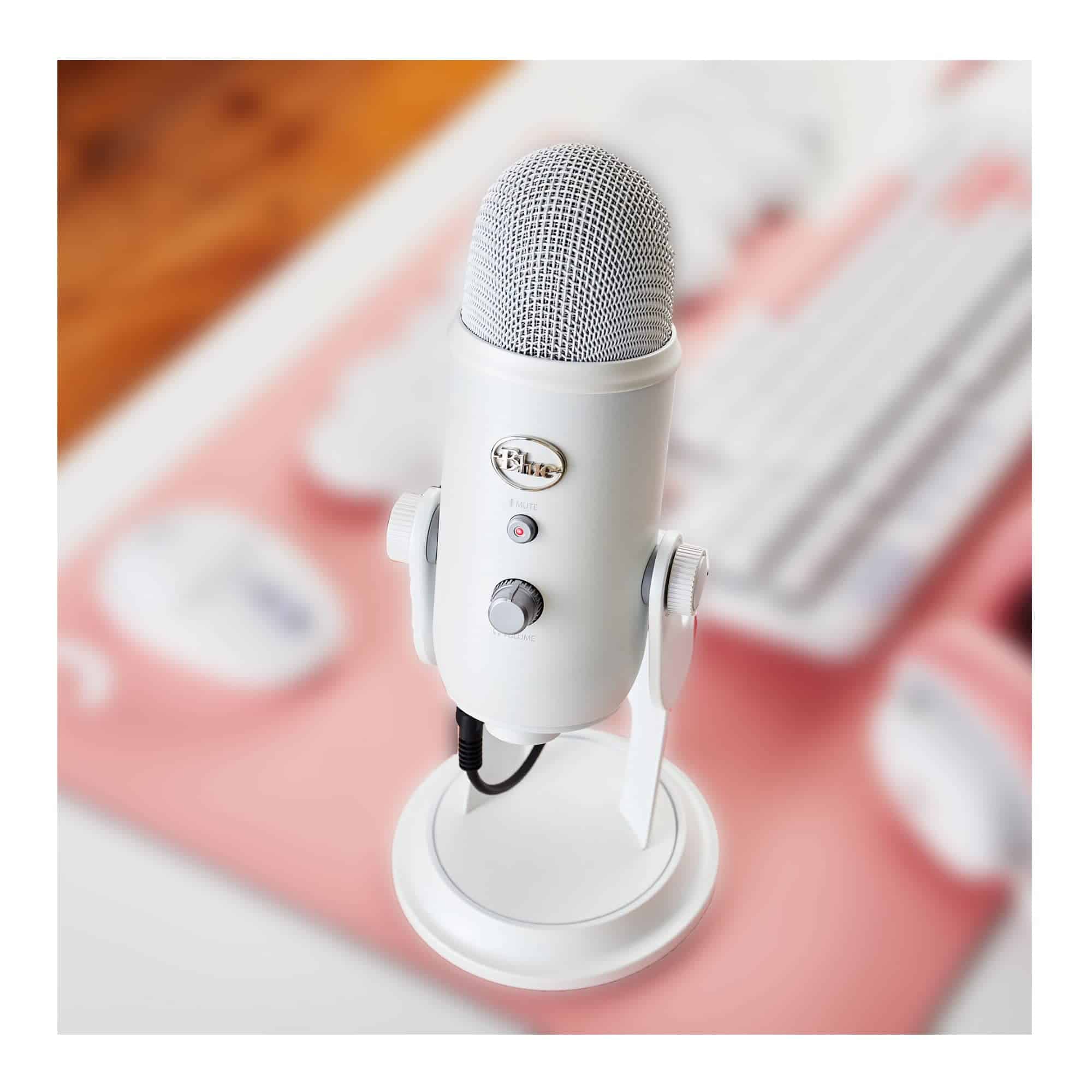 Micrófono USB Blue Yeti (White Mist) con brazo de micrófono
