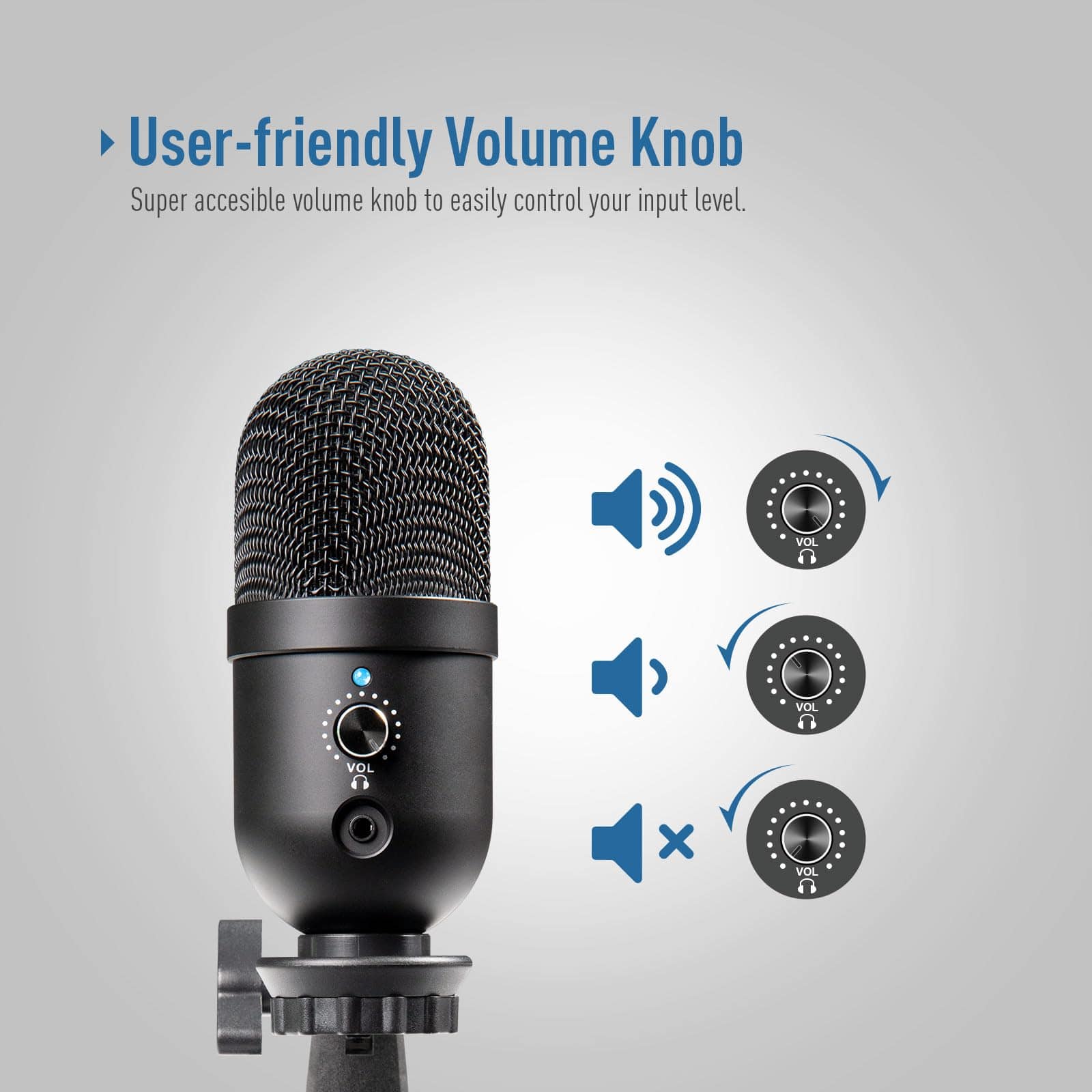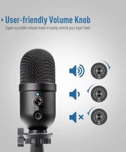 4. Monitorización en Tiempo Real: La salida de auriculares estéreo de 3,5 mm del micrófono profesional proporciona una monitorización directa y sin latencia! Te permite monitorizar la entrada del micrófono en tiempo real.