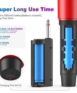 Say goodbye to the constraints of cords, Our wireless karaoke microphones offer an impressive 50M transmission range, ensuring a smooth and heartfelt duet or solo performance, no matter how far you roam on stage or around the room. Enjoy pristine sound without the pesky feedback. Our wireless microphones are engineered to prevent howling and maintain the true sound of your voice. Quality sound starts at the source. Our mics are equipped with a high-density sponge inside a durable metal head, balancing clarity with longevity. In addition to ordinary speakers, our microphone can also be matched with home karaoke systems, to meet your professional needs! Our microphones aren’t just about sound quality; they’re also about endurance. With up to 12 hours of battery life, these mics will keep up with your longest events or late-night jam sessions without missing a beat. Getting started is as simple as it gets. Just plug in, and you’re ready to go no complicated setup required. Whether you’re a tech whiz or a first-timer, these mics are designed for ease of use, allowing you to focus on what truly matters: your voice. From teaching a class to live streaming, leading worship in church, energizing a wedding, guiding a meeting, or lighting up the stage, our wireless microphones are versatile performers. They’re the ideal choice for any event where you need to be heard clearly and effortlessly.