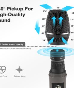 1. Duetos sin interrupciones desde cualquier distancia con un rango de 50M. 2. Sin aullidos con nuestros micrófonos inalámbricos de calidad cristalina. 3. Esponja de alta densidad en una cabeza de micrófono de metal. 4. Micrófono exclusivo para equipo de sonido profesional. 5. Duración más larga con 12 horas de vida de la batería. 6. Conectar, jugar y hablar. 7. Perfecto para cualquier ocasión.