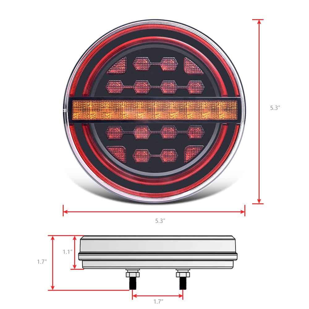 Luces traseras de remolque LED de 5.3 pulgadas robustas y confiables que garantizan un rendimiento excepcional y una visibilidad sobresaliente para una conducción segura de su remolque, camión, RV o bote. Estas luces de remolque sumergibles IP67 ofrecen un diseño multifuncional que permite cambiar fácilmente entre luces de freno rojas brillantes, lámparas de circulación diurna siempre encendidas y llamativas señales de giro ámbar. Con tecnología de doble brillo, estas luces ofrecen 300 lúmenes para luces traseras normales y hasta 1,700 lúmenes para alertas de freno o giro urgentes, brindando una visibilidad excepcional en condiciones de baja visibilidad como noches oscuras o neblinosas. Diseñadas para soportar los elementos, estas luces de remolque resisten el agua, la sal y el barro, gracias a su carcasa de policarbonato soldada por láser sin tornillos que protege la placa de circuito. La instalación es rápida y sencilla, con cableado codificado por colores que facilita a cualquier persona, incluso a principiantes, configurar las luces correctamente. Una solución versátil con aplicación universal para camiones, remolques, botes, motos de nieve y más. Además, respaldado por un equipo de soporte posventa profesional y una garantía de dos años para garantizar su satisfacción y seguridad en la carretera.