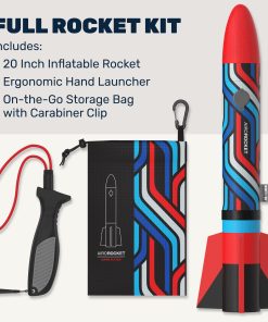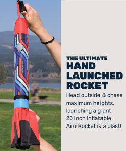1. EL COHETE LANZADO A MANO DEFINITIVO: Airo Rocket es un gran cohete inflable de 20 pulgadas lanzado a mano que es perfecto para el patio trasero, el parque o la playa. El cohete tiene una carcasa exterior de nailon ripstop y una resistente vejiga inflable de poliuretano, proporcionando vuelos máximos de más de 150 pies. Viene con todo lo que necesitas para tu próxima aventura, incluyendo un gran cohete, lanzador y bolsa de viaje. Disponible en Super Fly Red, Azul, Lima o Amarillo.