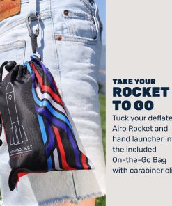 4. FÁCIL DE USAR: Con una válvula incorporada de inflado-desinflado rápido, el Airo Rocket se infla fácilmente en segundos. Para lanzar, simplemente conecta el lanzador al gancho en el cohete, tira de la correa de lanzamiento hacia atrás, suelta y deja que vuele. Este gigantesco cohete de 20 pulgadas surcando el aire seguramente llamará la atención en el parque. A los niños les encantará lanzarlo, correr tras él y atraparlo en pleno vuelo. Fácil de guardar después de jugar, simplemente presiona la válvula para desinflar y guarda el cohete con el lanzador en la bolsa para llevar en movimiento con clip de mosquetón.
