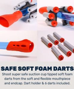 2. JUEGO DE OBJETIVO COMPLETO: ¡Hay diversión y luego está la diversión de Blow Darts para niños a los que les gusta correr, saltar, jugar y disparar dardos con punta de ventosa suave en interiores! ¡Practica tu puntería o desafía a un amigo a un juego de tiro con dardos con la imagen de diana adhesiva marcada incluida. Pon a prueba tus habilidades, lleva la aventura adentro y convierte cada superficie brillante en un posible objetivo. Los Blow Darts son suaves y seguros para disparar en interiores sin causar ningún daño.