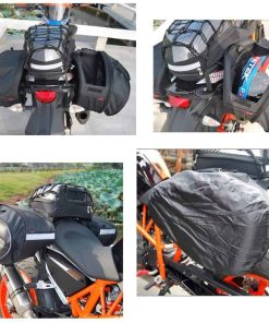 Característica: Las bolsas de sillín para motocicletas han sido diseñadas específicamente para ofrecer una excelente cantidad de espacio de almacenamiento, practicidad y versatilidad. Estas bolsas son ideales para viajes cortos o largos. Se sujetan rápida, fácil y seguramente a tu motocicleta. También vienen completas con dos cubiertas para la lluvia para garantizar que tu equipaje esté protegido del agua. Las bolsas de sillín son expandibles hasta una capacidad máxima de 58 L, el peso unilateral más pesado es de 3KG. Las bolsas de sillín para motocicletas se pueden fijar firmemente en la motocicleta a través de la cuerda de conexión bajo la motocicleta. Evita que se caigan mientras conduces. Especificación: Material: Tela Oxford, Tela de Nylon Peso: 1.8KG Tamaño: 46cm(L) x 18cm(W) x 30cm(H)——- 46cm(L) x 28cm(W) x 30cm(H) Incluido en el paquete: -2 x Bolsas de Sillín -7 x correas tipo hebilla -2 x cubiertas para la lluvia