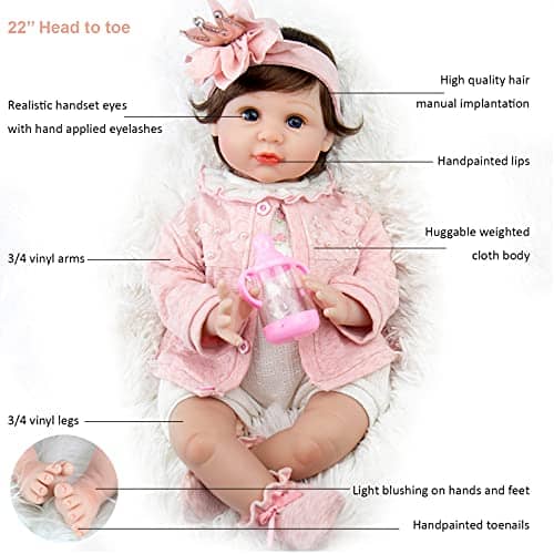 Milidool Muñeca Bebé Reborn Niña, 22 pulgadas Realista