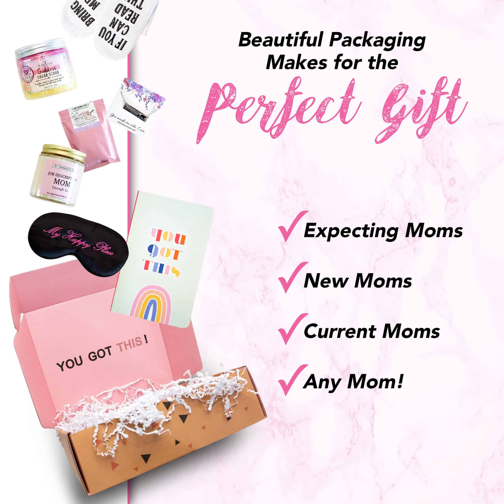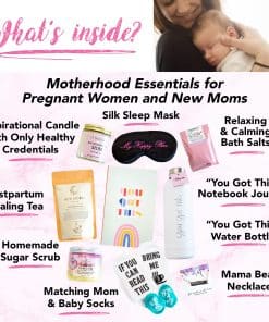 La maternidad puede ser agotadora y gratificante al mismo tiempo. Desde el momento en que una mujer concibe, el viaje de una madre puede ser bastante accidentado. Hay náuseas matutinas, trabajo de parto, parto y noches sin dormir con las que lidiar. Pero ver a un bebé feliz y satisfecho, creciendo grande y sano, definitivamente lo vale todo. Todo ese arduo trabajo y sacrificio hace que cada madre merezca un tratamiento extra especial. Las mamás deben tener productos que las ayuden a pasar por el embarazo y el posparto de manera más fácil y menos estresante. Sorprende agradablemente a todas las nuevas madres que conozcas con la Caja de Regalo Milky Chic para Nuevas Mamás! Ayuda a mejorar el bienestar y la felicidad de una mamá después del parto. Nuestra caja de regalo está llena de elementos esenciales que pueden ayudar a las mujeres embarazadas y a las nuevas mamás a pasar por la maternidad suavemente: Botella de agua ‘You got this’ de 17 oz Antifaz de seda «My Happy Place» Exfoliante de azúcar artesanal Diosa Collar Mama Bear Calcetines a juego para mamá y bebé con citas Vela con una cita Sales de baño de lavanda relajantes Té para la lactancia posparto Diario ‘You Got This’ Madres, tanto nuevas como experimentadas, también pueden comprar esta caja de golosinas para ellas mismas. Piénsalo como un regalo de autocuidado. Realmente disfrutarás de los artículos de spa relajantes para tu tiempo para ti. ¿Buscas el regalo adecuado para una fiesta de baby shower? Regala una caja de regalos repleta de varios productos excepcionales. El receptor seguramente encontrará útiles y beneficiosos los elementos en el interior, desde la etapa de maternidad hasta después del parto. ¿Por qué elegir nuestra caja de regalo para nuevas mamás? Único, exclusivo bundle Todos los productos del paquete son de primera calidad y seguros Empaquetados en una caja lista para regalar Dale a las mamás el amor extra que se merecen. ¡Agrega la Caja de Regalo Milky Chic para Nuevas Mamás a tu carrito HOY!