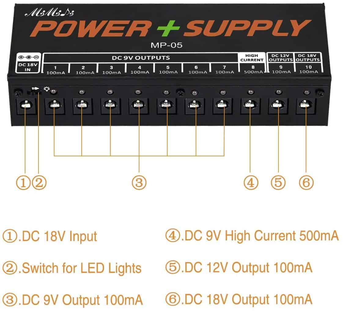 MIMIDI Guitar Pedal Power Supply, 10 Salidas DC Aisladas