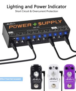 1. 10 Salidas Individuales – Fuente de alimentación para pedalera de guitarra diseñada para efectos de pedal. Incluye 10 salidas aisladas: Puerto de 9V 100mA x7, puerto de 9V 500mA x1, 12V 100mA x1, 18V 100mA x1.