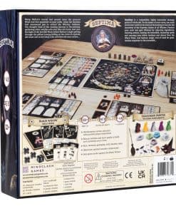 Septima es un juego de estrategia altamente interactivo y competitivo de brujería. Como líder de tu coven, debes demostrar tu valía en la ciudad de Noctenburg para convertirte en el sucesor de Septima, la Bruja Suprema. Practica tu oficio y adquiere Sabiduría recolectando hierbas, elaborando pociones, sanando a los habitantes del pueblo, dominando encantamientos y rescatando a tus hermanos y hermanas de los juicios. Pero cuidado: la magia, incluso si se usa para el bien, despierta la sospecha en los habitantes del pueblo. Este producto incluye: Modo solitario independiente 28 componentes de madera serigrafiados 40 meeples de madera 110+ cartas 230+ fichas de cartón 32 fichas de personaje 16 cristales de plástico 4 marcadores de plástico 2 dados únicos 7 tableros 1 bolsa de tela