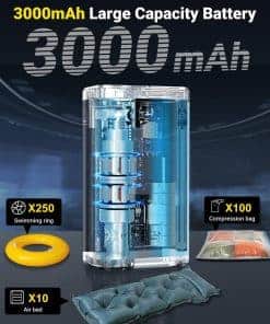 La pantalla de visualización LED de la bomba de aire brinda información clara sobre el estado de trabajo y la energía de la batería. Su batería recargable de 3000mAh garantiza una larga duración y un uso conveniente en cualquier lugar.