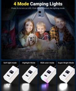 Una de las características destacadas de esta bomba de aire es su linterna de camping integrada con ocho cuentas de lámpara LED. La linterna ofrece 3 niveles de brillo ajustable, lo que la hace ideal para iluminar su entorno de camping en diferentes situaciones. Además, cuenta con una luz de respiración de siete colores adicionales para agregar un toque de diversión a su viaje.