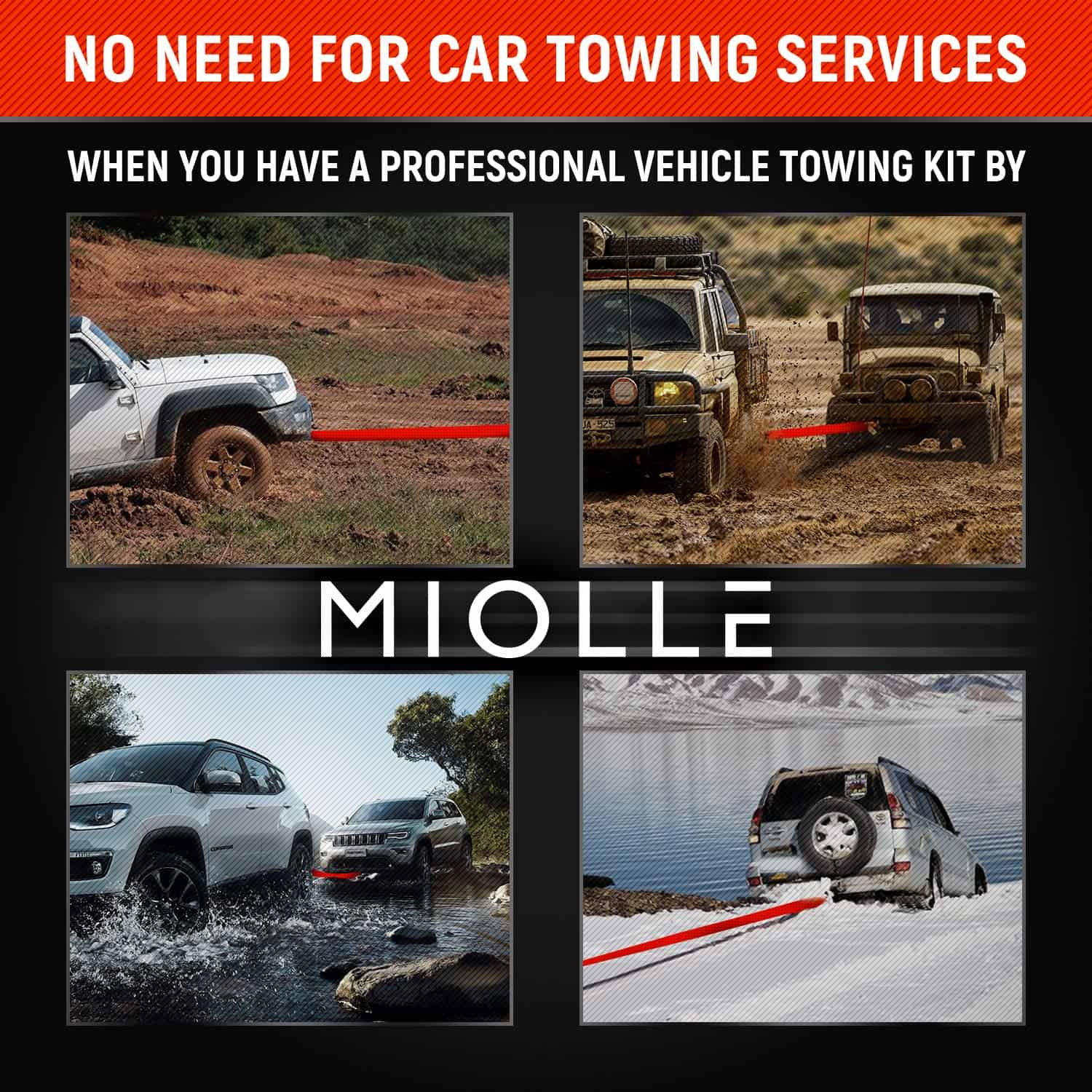 MiolleGear Tow Strap 4”x30’- 45000lbs MBS (Probado en
