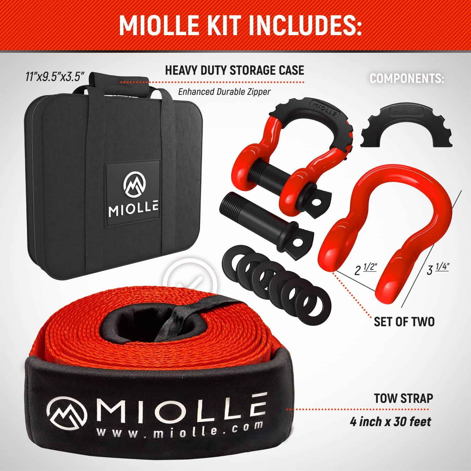 MiolleGear Tow Strap es un kit de recuperación de alta resistencia que incluye una correa de remolque de 4 ”x30’ con una Resistencia Mínima a la Rotura de 45000 Lb’s, perfecta para cualquier vehículo. Fabricada con poliéster resistente a los rayos UV y al agua, esta correa de remolque es duradera y confiable en situaciones de emergencia. Además de utilizarse como correa de remolque, también puede funcionar como una correa para levantar palets o un protector de árboles, lo que la hace versátil y práctica. El kit también incluye 2 grilletes en D-Ring con tornillos de ajuste común, con una clasificación de WLL 10470 libras y una capacidad de rotura de 62700 libras, lo que garantiza una seguridad óptima en operaciones de recuperación. MiolleGear se enorgullece de ofrecer productos de alta calidad y durabilidad, respaldados por un servicio al cliente excepcional. No más preocupaciones en carretera, confía en MiolleGear Tow Strap para tus necesidades de remolque.
