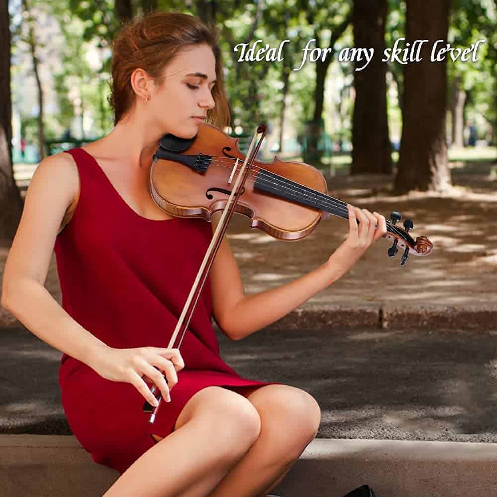 Violín de calidad superior hecho a mano con madera maciza, tapa de abeto de alta calidad, lateral y parte trasera de arce de alta calidad con llama muy pronunciada. Decoración de embutido doble y diapasón de ébano negro, clavijas de ébano con incrustaciones decorativas de madreperla, reposacabezas ergonómico de ébano y cordal compuesto resistente y ligero con cuatro afinadores finos para una fácil afinación. Incluye estuche rígido liviano, arco de madera de Brasil, colofonia de alta calidad, reposahombro de madera ajustable y afinador. Viene con un arco extra, puente adicional, juego completo de cuerdas superiores MIRIO de repuesto. La calidad de sonido es excepcional, brillante y vibrante. Respaldado por una garantía de por vida y una garantía de devolución de dinero de 60 días. Aproveche el valor increíble de este violín de MIRIO.