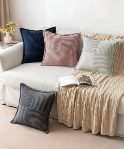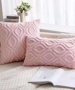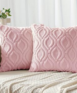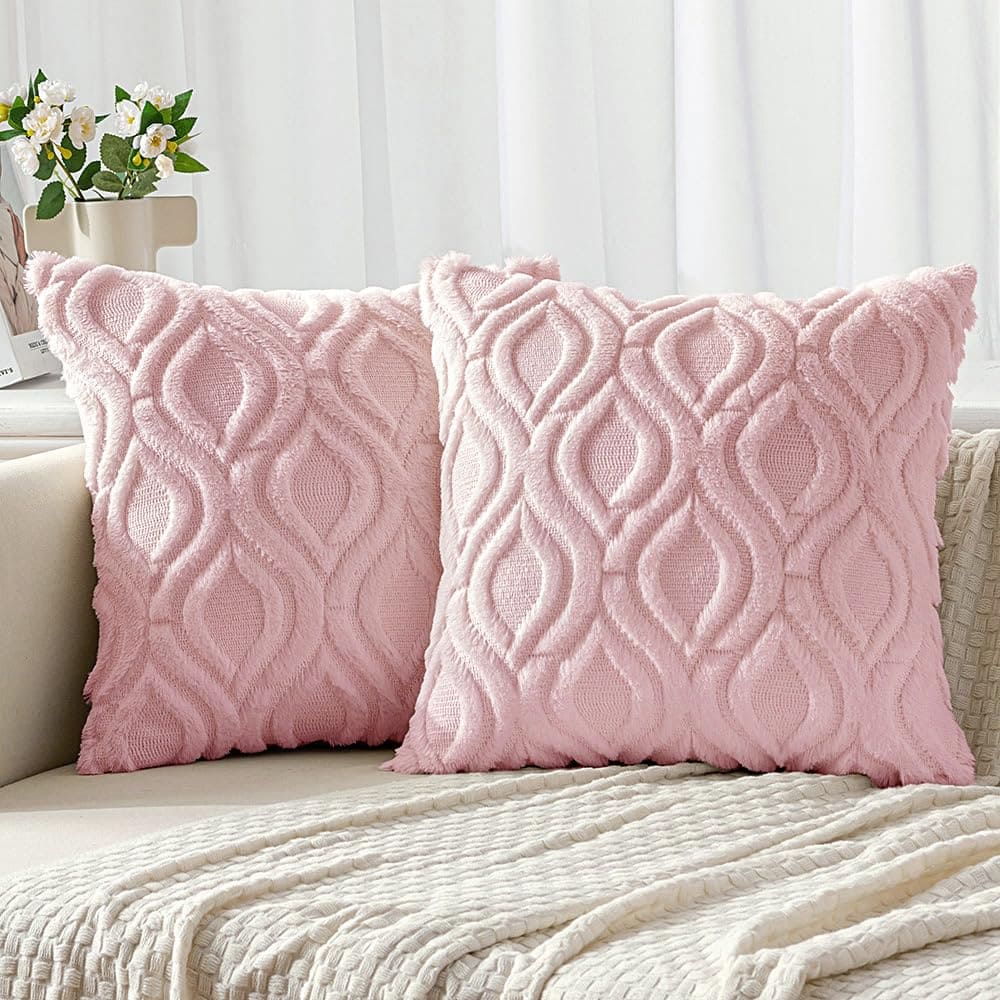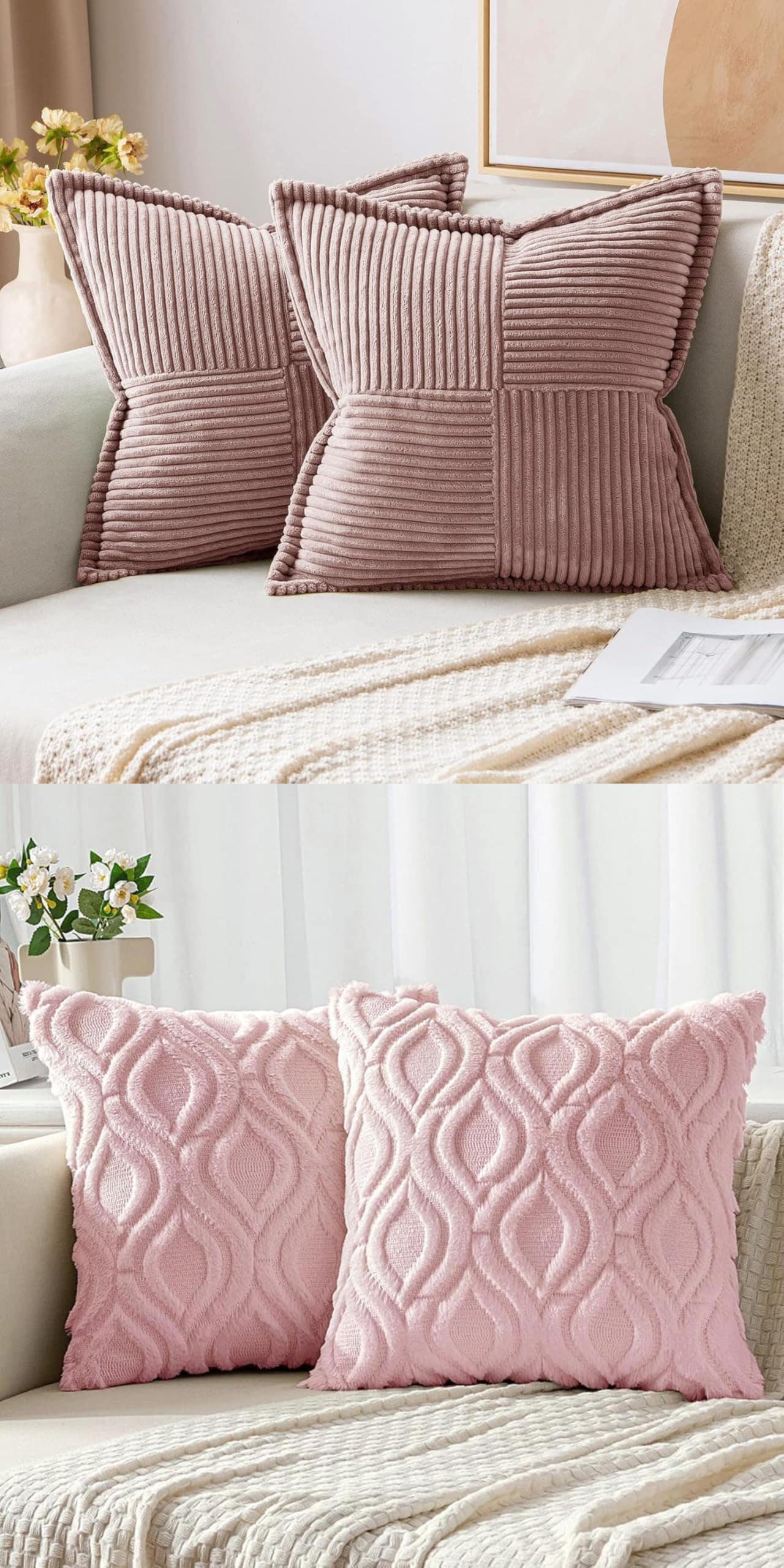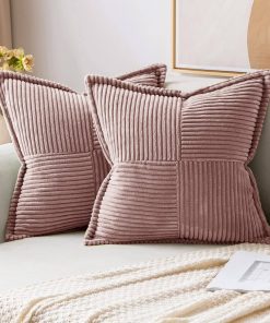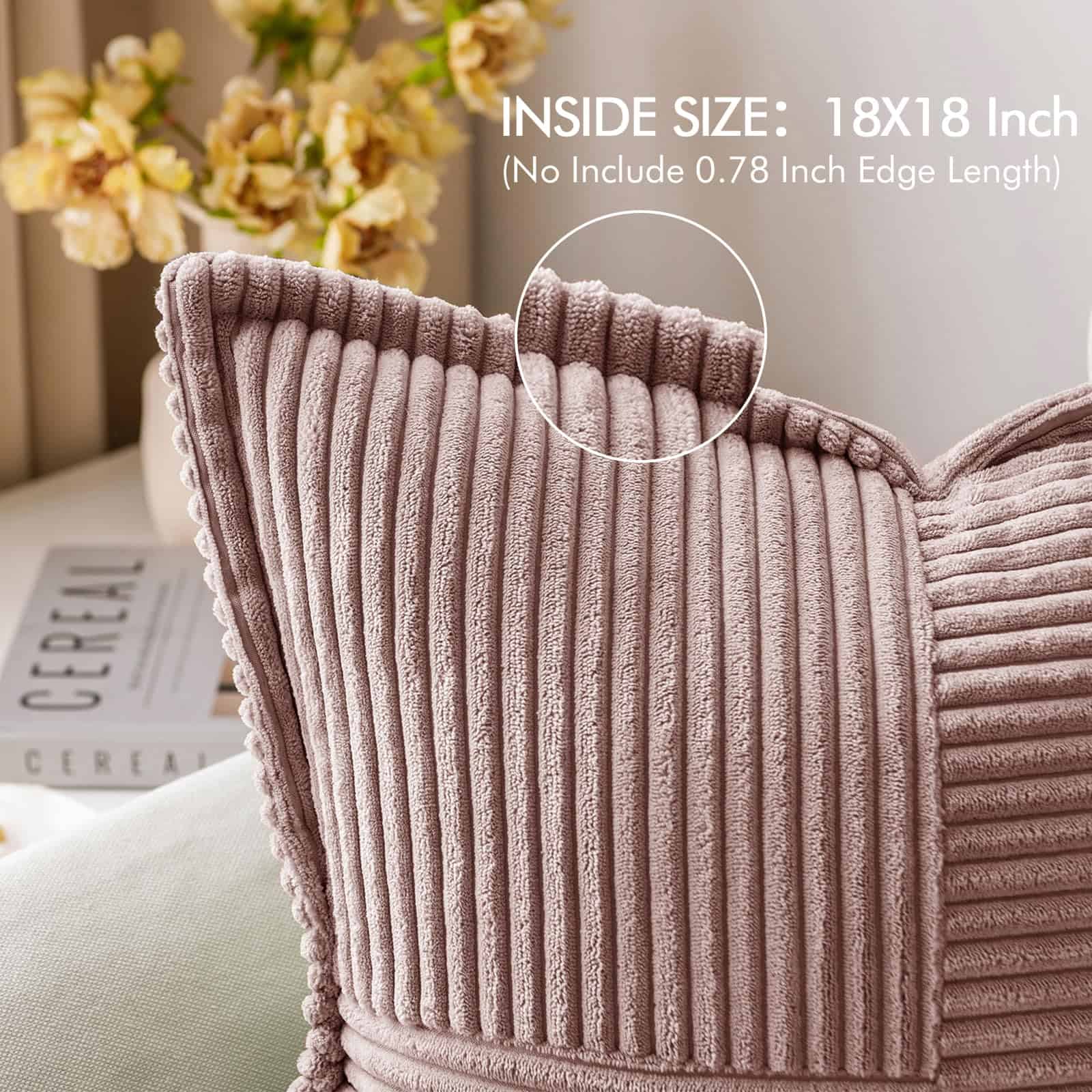 MIULEE Pack de 4 Fundas de Almohada de Pana de Oveja para Sofá 18×18 Pulgadas Rosa Claro