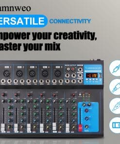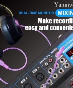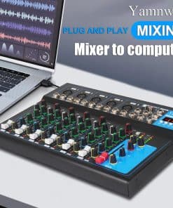 El Mixer Profesional Yamnweo GH7 es la herramienta perfecta para DJ, músicos y artistas que buscan calidad en su sonido. Con 7 canales de entrada, este mixer te permite conectar múltiples dispositivos al mismo tiempo para lograr la mezcla perfecta. Además, su puerto USB Drive y la función Bluetooth facilitan la reproducción de música directamente desde tus dispositivos favoritos. Ya sea para grabaciones en estudio, presentaciones en vivo o sesiones de karaoke, el Yamnweo GH7 garantiza un sonido limpio y profesional en todo momento.