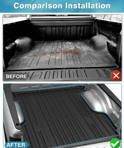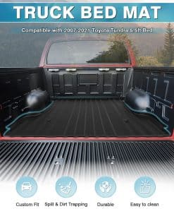Mixsuper Liner Pickup Truck Bed Mat Bed Liner compatible with 2007-2021 Toyota Tundra 5.5ft Bed. All Season Guard and Safe TPE Material: Truck bed liner is made of premium durable TPE materials, wear-resistant, non-slip and odorless. High tensity and safe TPE material keeps its flexibility in all season while still offering an excellent feel and extreme wear resistance. Anti-Slip and Trap Debris: Textured, skid-resistant, weatherproof bed mat has unique channels can effectively trap sand, water, mud, dirt, rain and muck. You won’t have to worry about the luggage/groceries scratching or staining the original floorboard thanks to the bed liner. Spill Blocking Sides: The truck bed liner is specially designed with raised lip all the way around to stop liquids and debris from reaching your original floor. Make sure the mess stays on the bed mat and off your original clean car floor. Convenient and Easy to Clean: The weatherproof and stain-resistant bed mat is easily cleaned by wiping with a wet towel or rinsing with water directly. Attention: The bed liner is folded for shipping. Just place it under the sun to help get the creases out.