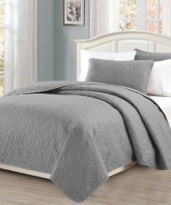 Mk Collection 3pc Rey/Tamaño California Cubrecama Colcha de Diamantes Super King Tamaño Cubierta de Cama Gris Sólido Nuevo